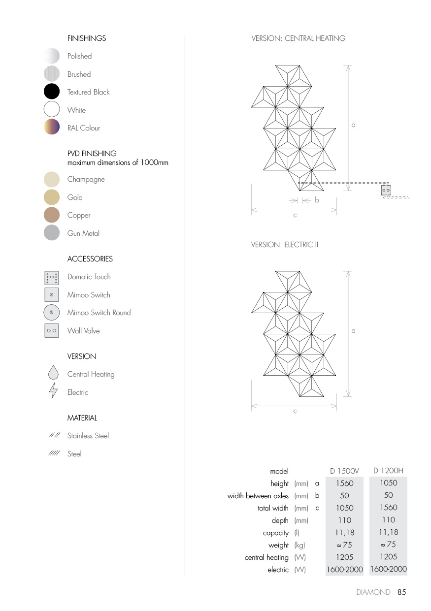 Diamond was conceived to satisfy the need for heating solutions that accompany the conceptual evolution and differentiation of modern spaces.