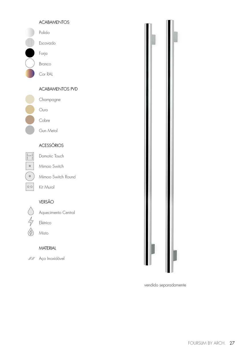 O Fourslim é um seca-toalhas que combinando duas ou mais unidades poderá ser utilizado para aquecimento do ambiente.