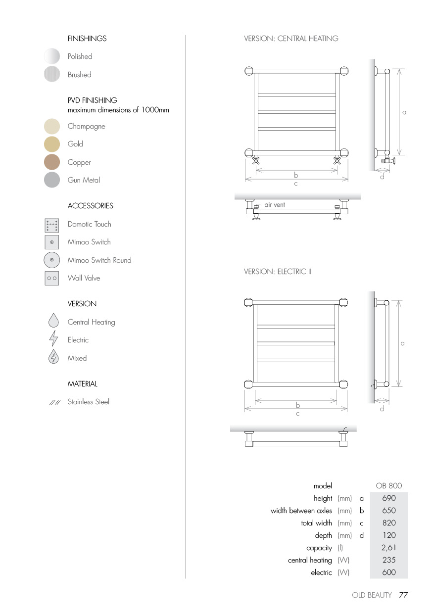 Available in polished, brushed, gold and old gold stainless steel, in the central heating