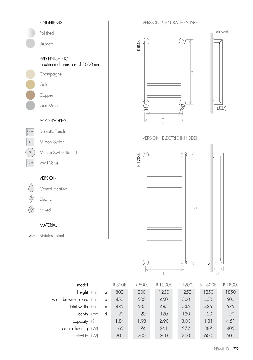 Available in polished, brushed, gold and old gold stainless steel, in the central heating